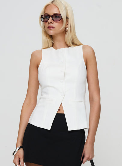 front view of model wearing Princess Polly Theodosia Top White Sleeveless Crew Neck