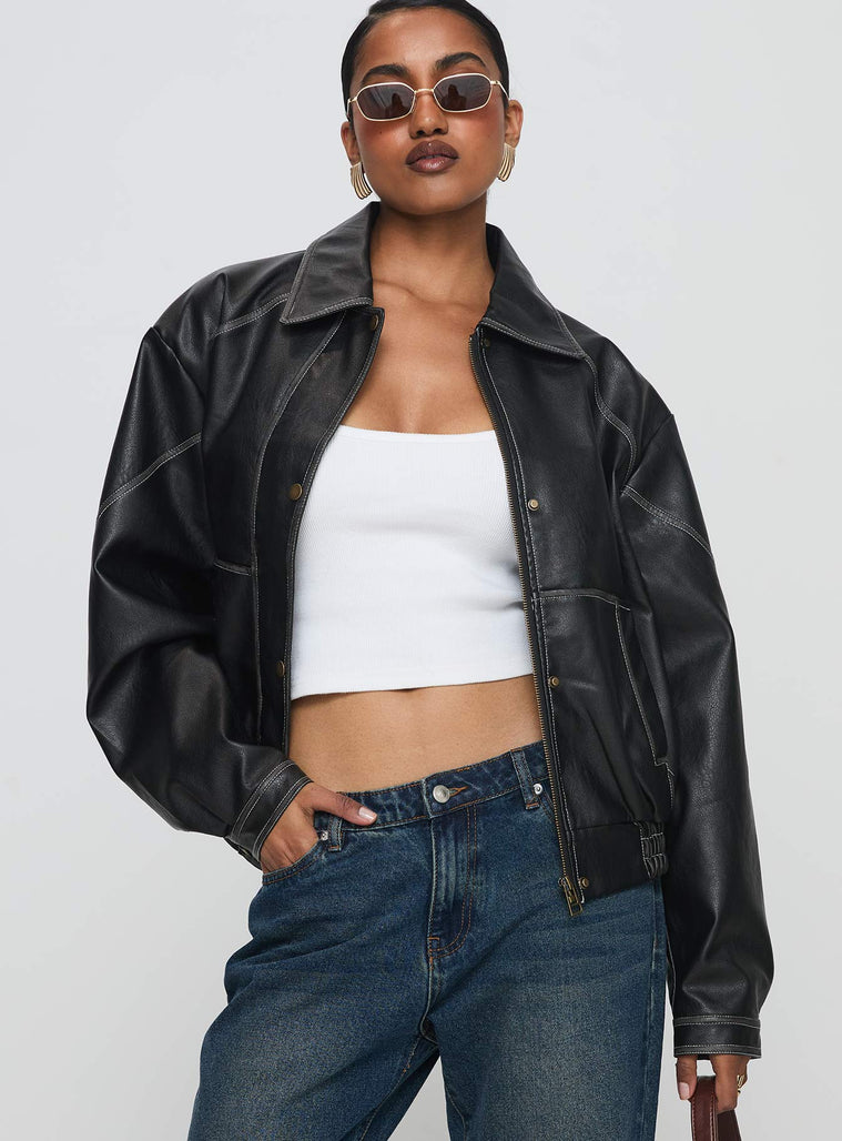 Jaxton Faux Leather Jacket Black has a rating of 4.9 stars based on 131 reviews.