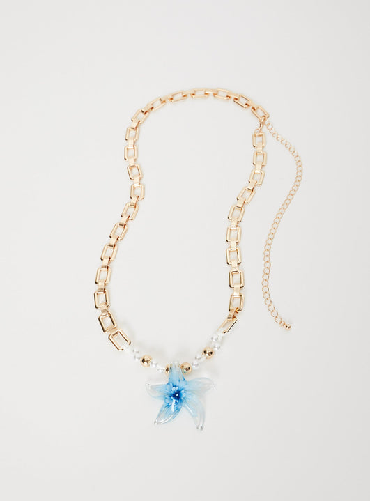 Chain belt Gold toned, flower pendant, lobster clasp fastening