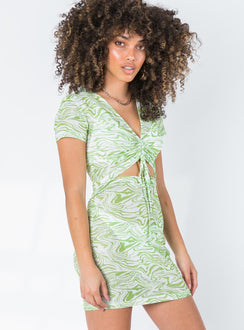 TWIIN Glitch Mesh Mini Dress Multi Green