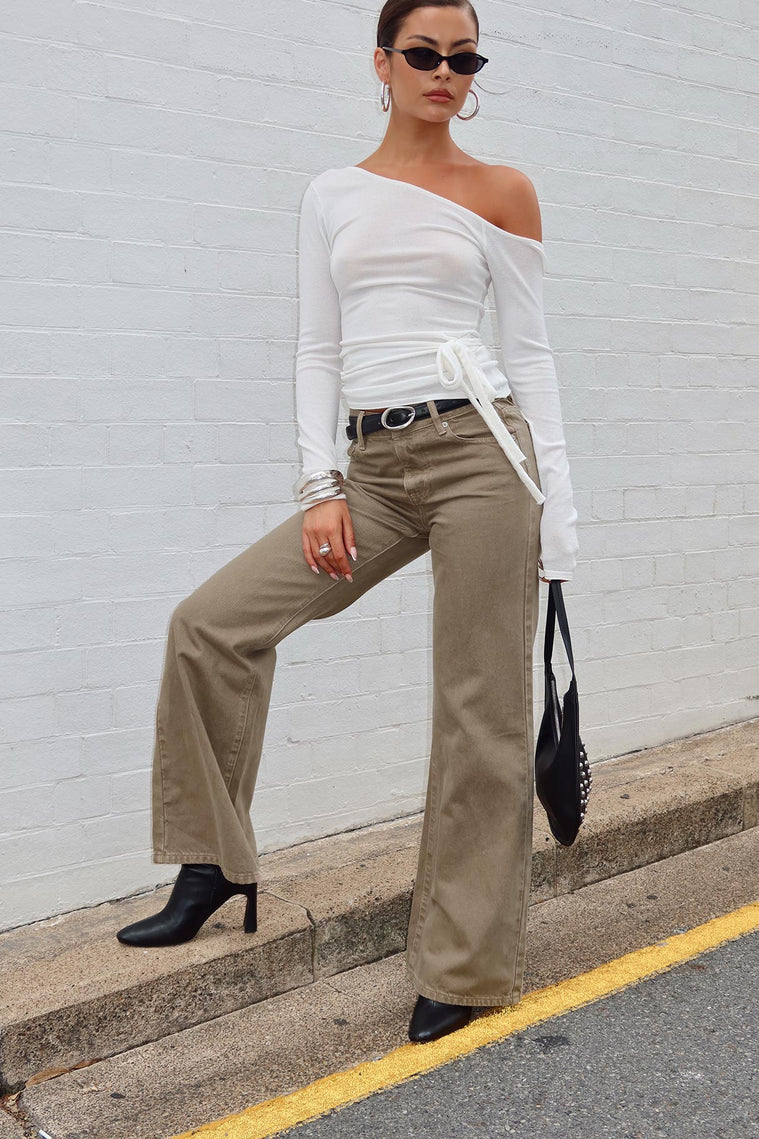 Under Control Mid Rise Wide Leg Jeans Washed Brown