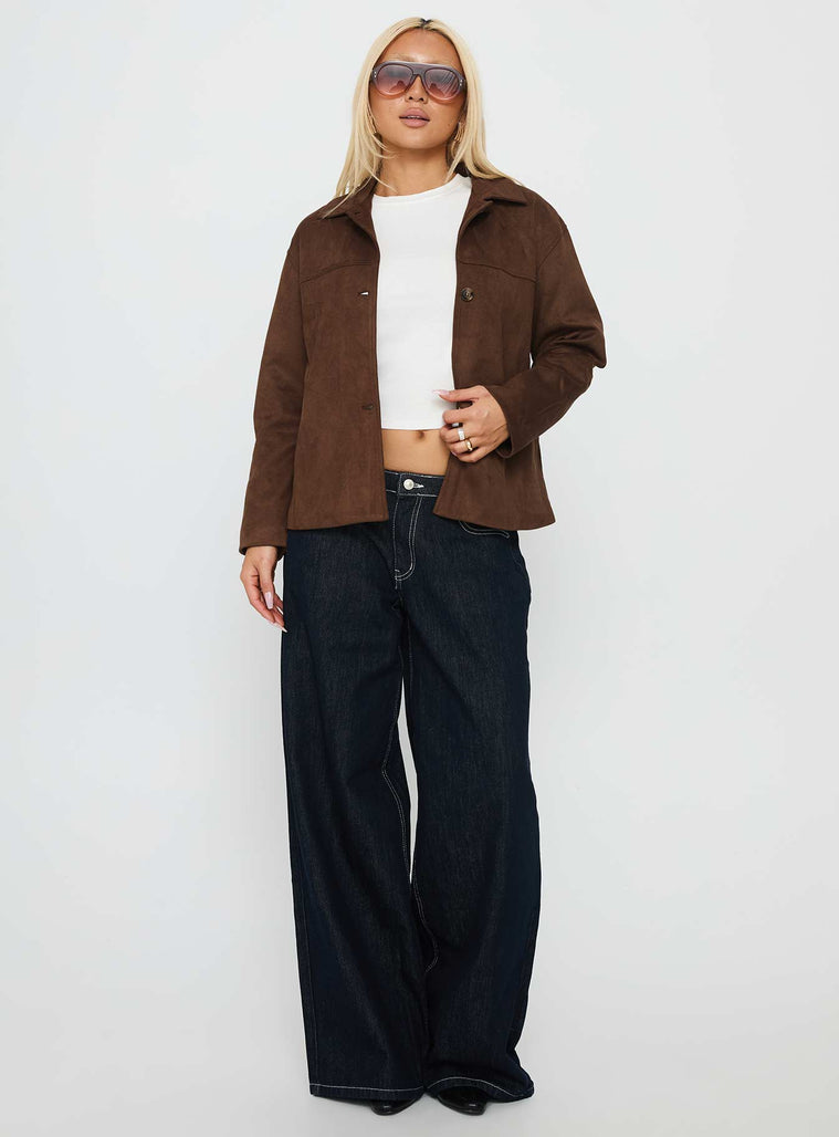 - Faux suede long sleeve jacket
