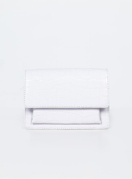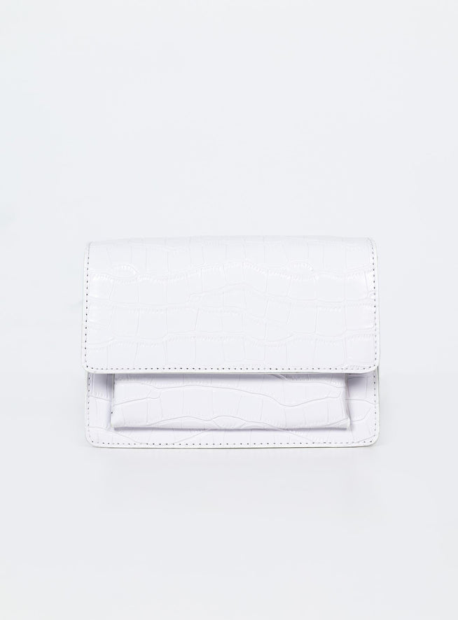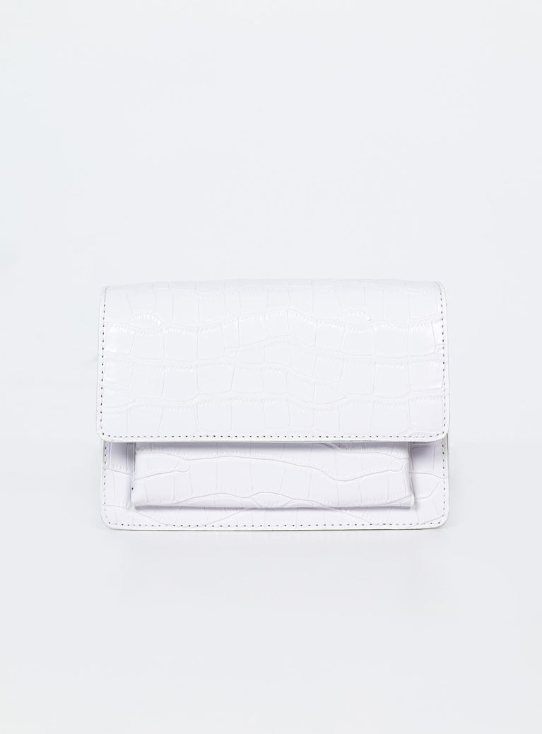 White bag Faux croc print Twin magnetic button fastening Adjustable straps Double compartments Gold-toned hardware