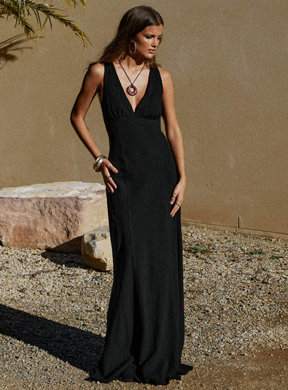 Verde linen blend maxi dress black