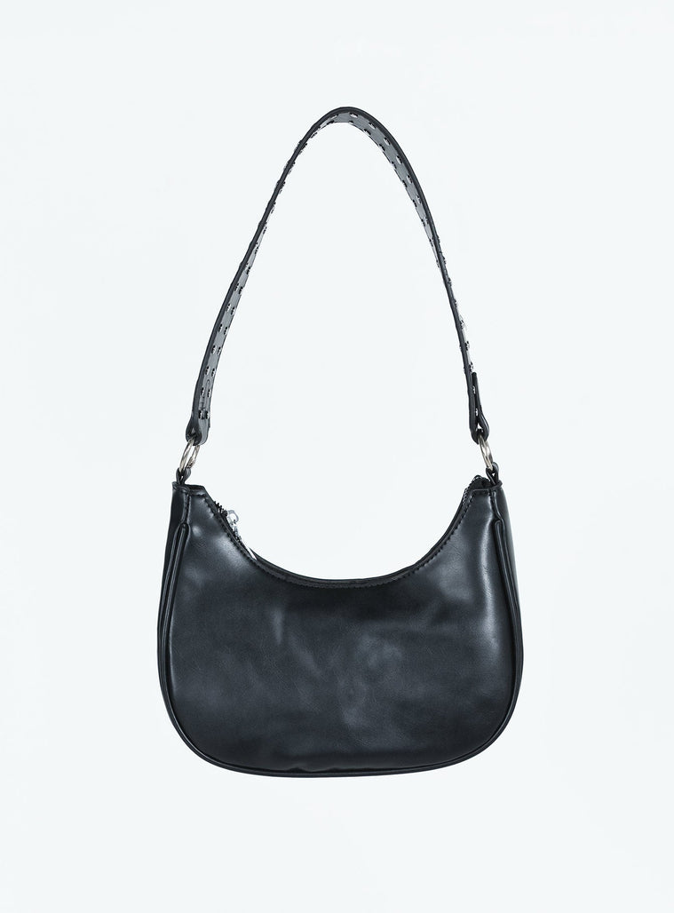 Faux leather shoulder bag Silver-toned hardware, removable strap, zip fastening, inner card slip, flat base