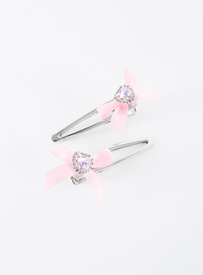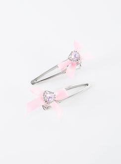 Waltz bow hair clip pack pink / silver