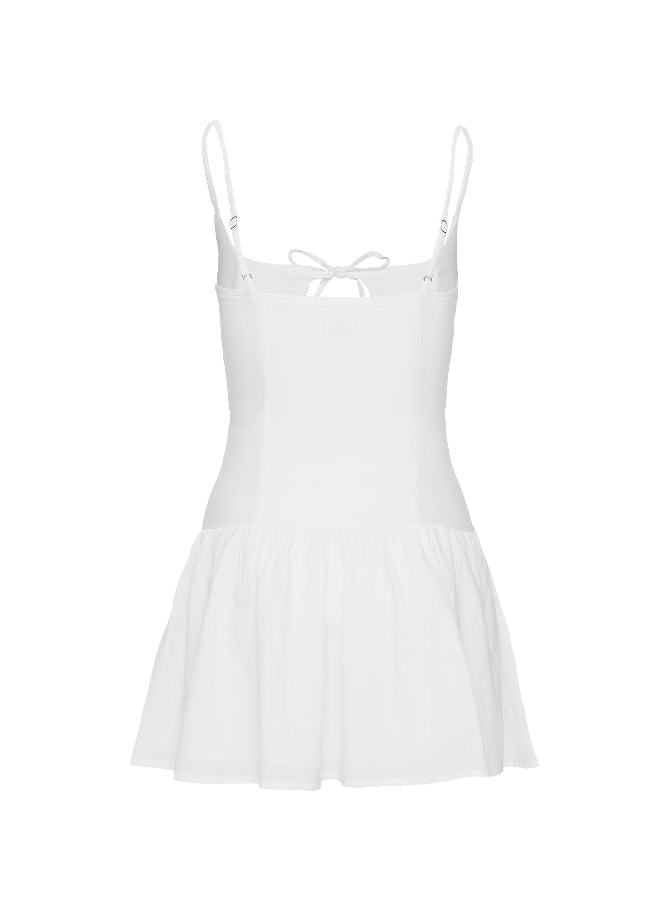 - Scooped neckline, front tie detail, invisible zipper on side, pleated hem, adjustable straps