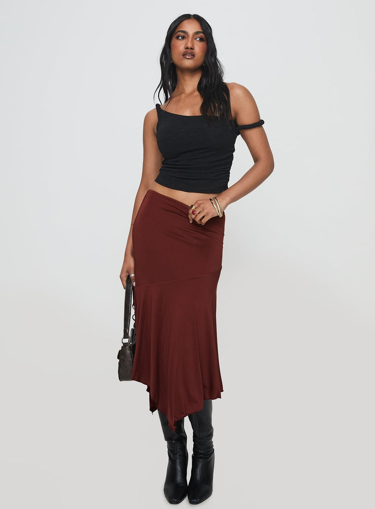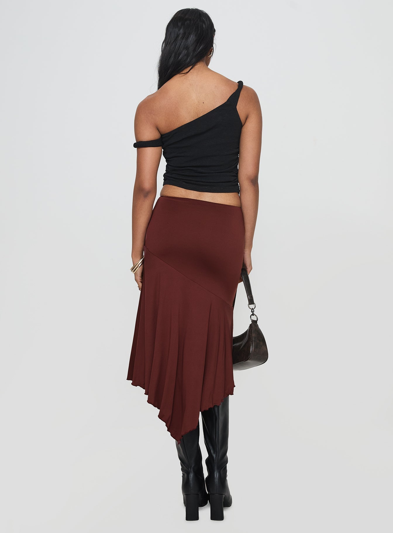 - Elasticated waistband, asymmetrical, lettuce edge hem