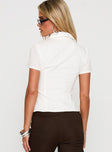 back view of model wearing Princess Polly What A Show Button Up Top White Short Sleeves V-Neck