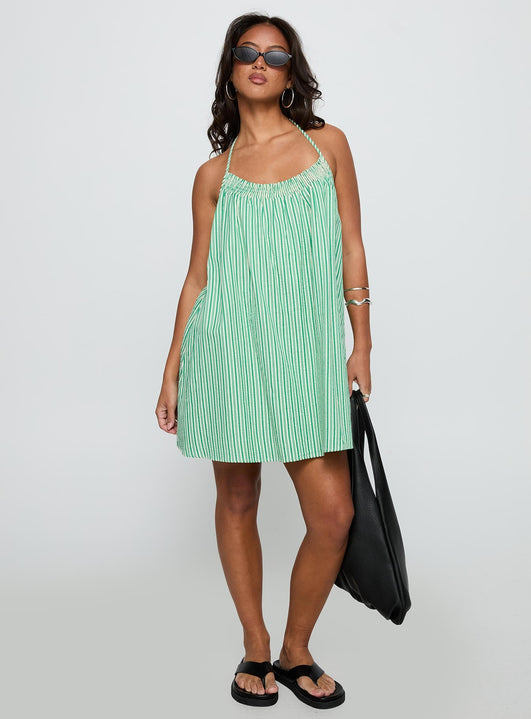 Winx halter mini dress green stripe