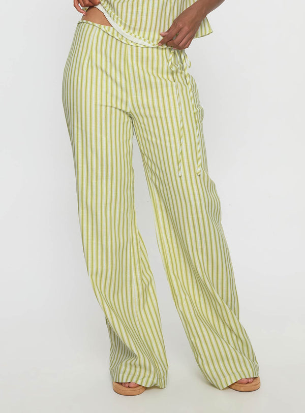 With pleasure puff sleeve linen blouse top green / blue stripe