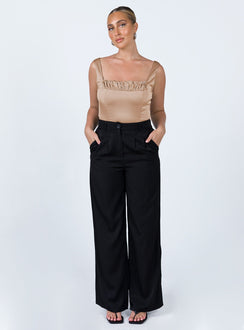 front view of model wearing Princess Polly Ximena Bodysuit Beige Sleeveless Square Neck