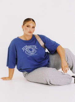Blue vintage look tee oversized fit Yosemite print on front Slim crew neck Drop shoulder