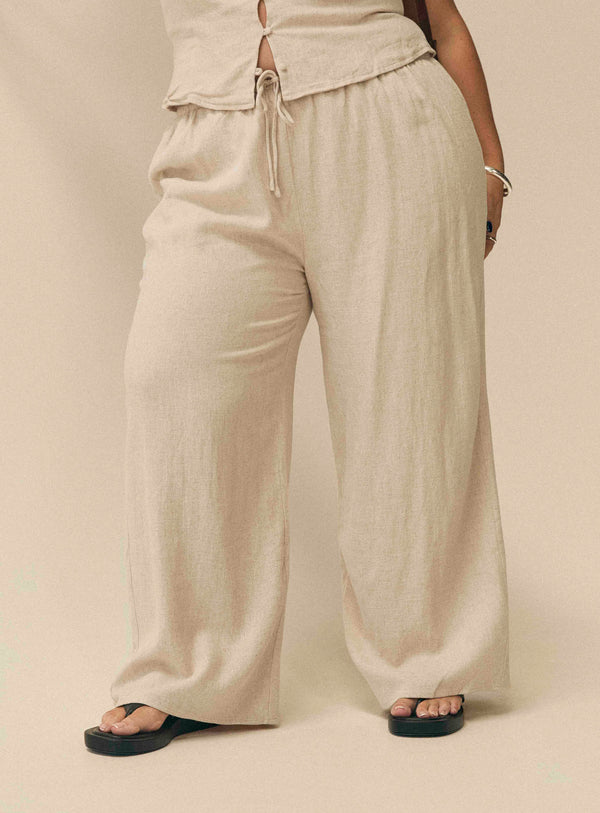 Zenda linen blend top beige curve
